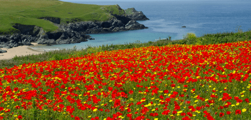 A short poem inspired by the annual flowering of poppies on the cliffs overlooking Polly Joke beach in Cornwall.