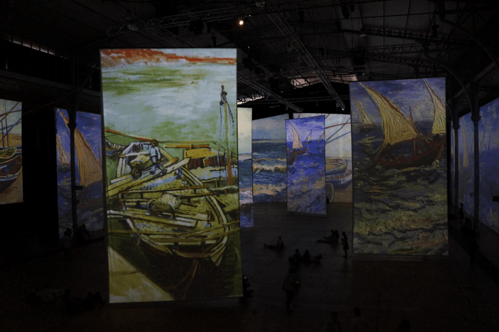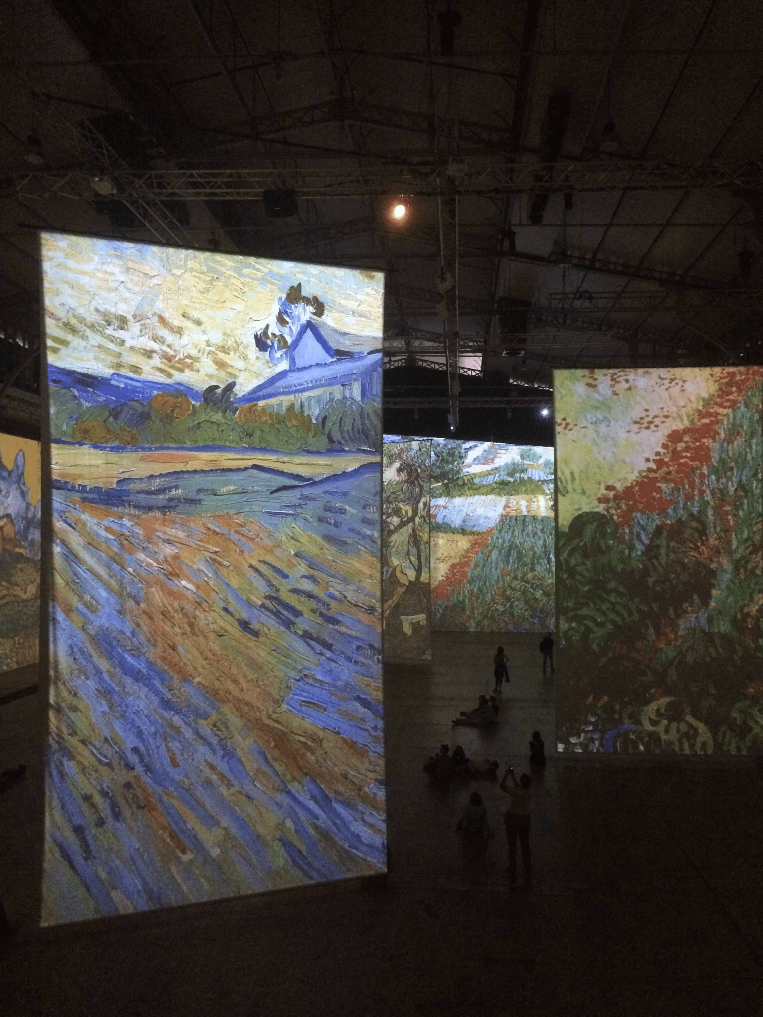 From the huge ceilings hung large, rectangular projector screens, where Van Gogh’s artwork is displayed. It’s compilation of his work set to music, with the image changing every minute or so. Because of the projectors, the whole room is dark so that all you can see is the artwork, which removes you from the old warehouse and from Paris itself. When abroad, you’re usually hyperconscious of your environments. Here, it didn’t feel like abroad, nor did it feel like home. Ultimately, I think I felt that it didn’t really matter where I was. There was no one stood rigidly staring at the artwork from a set distance. Instead, people were lying down, seeing it up close or wandering around it normally, like it was aisle in a supermarket. Through presenting the art work this way, it’s a little like Van Gogh himself is showing you around his work, as opposed to locking it away on museum walls where you would stare at it like you stare at a television.