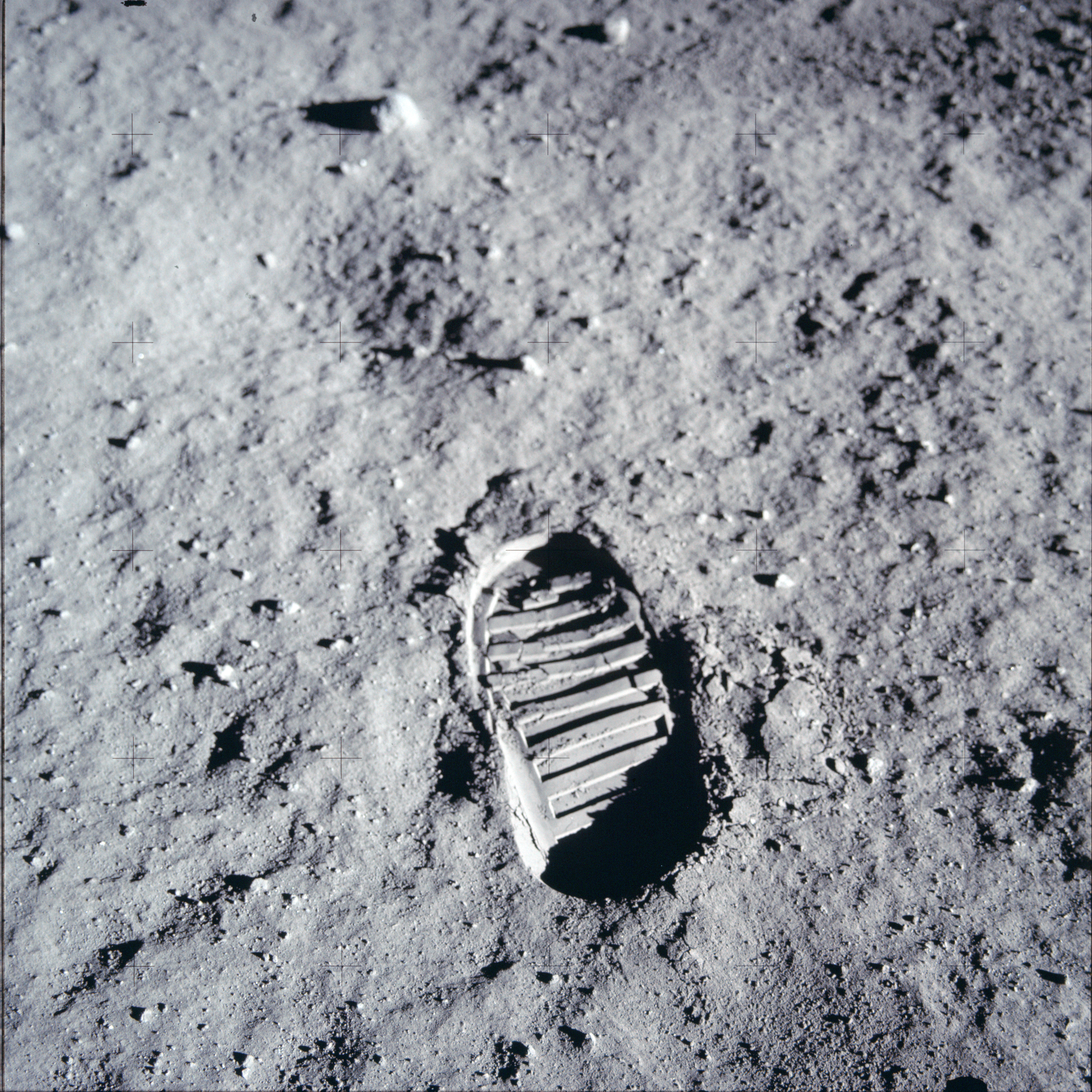 A photograph of Armstrong’s footprint on the lunar surface, taken using a Hasselblad. (Image: Lunar and Planetary Institute)