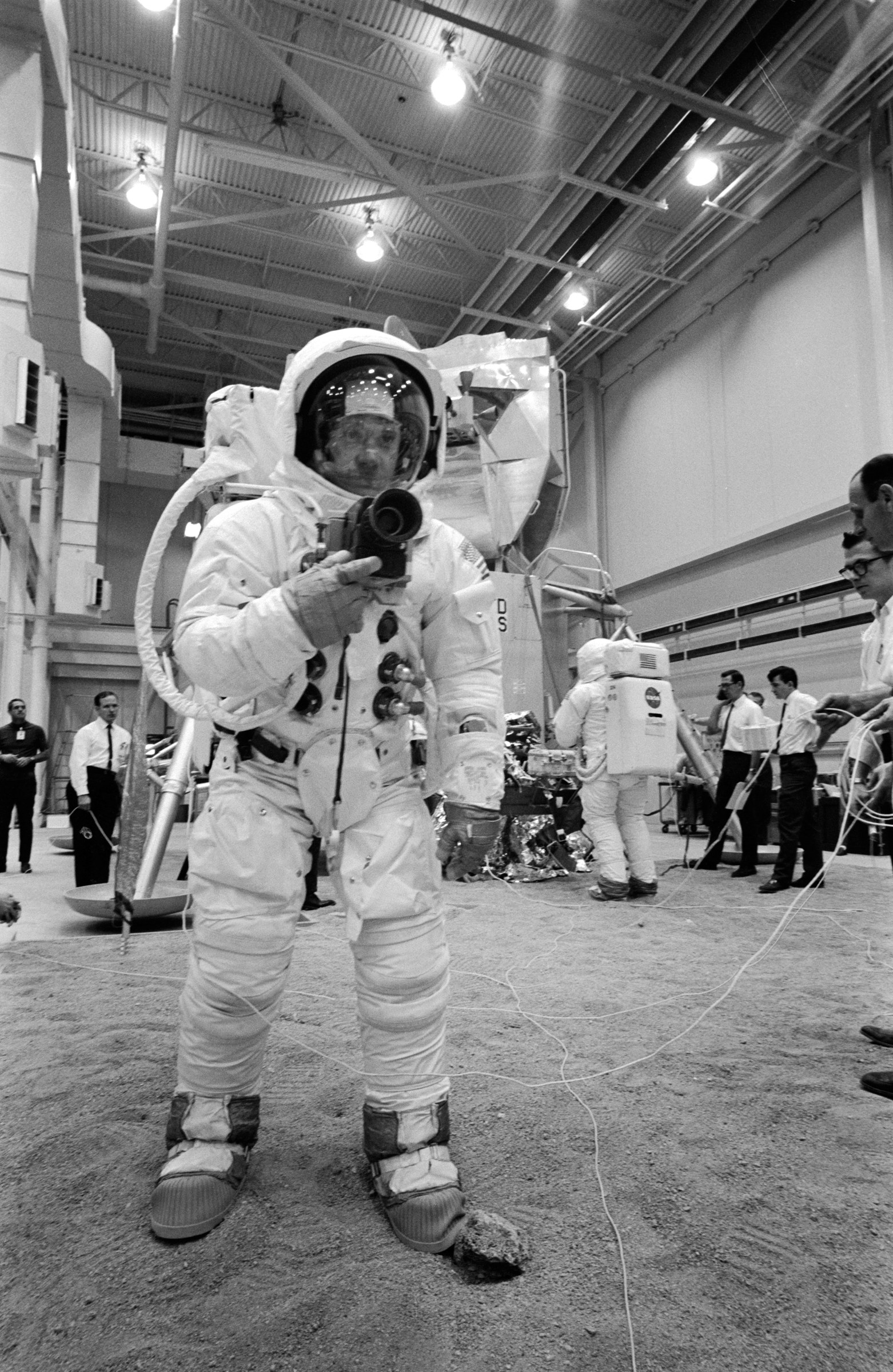 Aldrin practising using the Hasselblad EDC during Extravehicular Activity training for Apollo 11 – taken in April, 1962. (Image: NASA)
