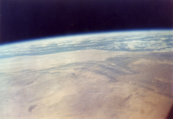 This picture is to the best of my knowledge the first hand-held camera picture ever taken from space. I took it during the first orbit of my Friendship 7 flight on February 20, 1962, during the early stages of our first effort to accomplish manned orbital flight. NASA knew that pictures from orbit were an important part of showing the public the beauty of space, as well as the importance of exploring it.