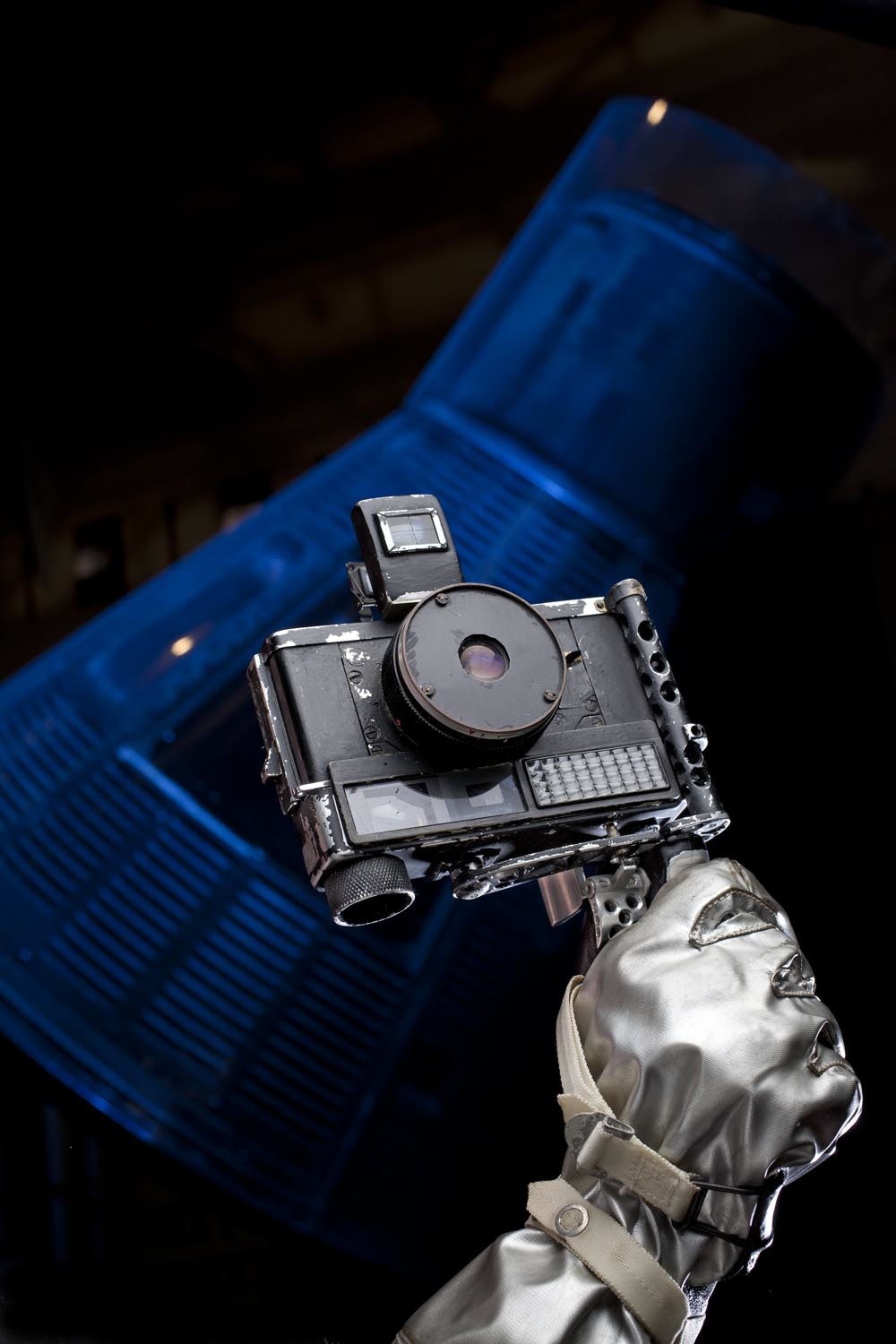 John Glenn’s camera held in front of Friendship 7. (Image: Eric Long, National Air and Space Museum)