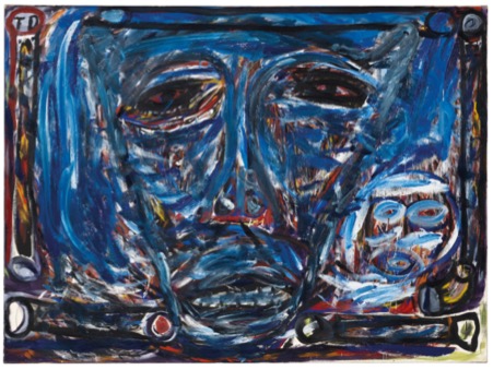 Thornton Dial’s painting, The Reservoir, predicted to sell for between $25,000 and $50,000 on Friday, is an excellent example of Outsider Art with a community message. A large and predominantly blue painting, it features faces directly looking at the viewer, sombre eyes turned downwards, faces scarred with flashes of red and yellow, and teeth bared between black lips. To me, it perfectly captures Dial’s message about ‘how the Negro has been mistreated in the United States, how he been used.’ The features on the side of the painting are ambiguous but they resemble logs and railroad tools – either way, they directly link to Dial’s message of exploitation. It is a message about how a whole race of people was used to build the American economy, infrastructure and means of transportation with few benefits in return. However, Dial’s art exists as more than just a statement of anger and upset. Indeed, it speaks of power and freedom. The bared teeth, the unbroken stare and the glimpses of warm brightness behind the cold blue all indicate strength. Dial’s patron Bill Arnett once told him that he could ‘bring civil rights to people in ways that Martin Luther King didn’t live to,’ and up until his death in January 2016, Thornton wholly delivered this maxim.