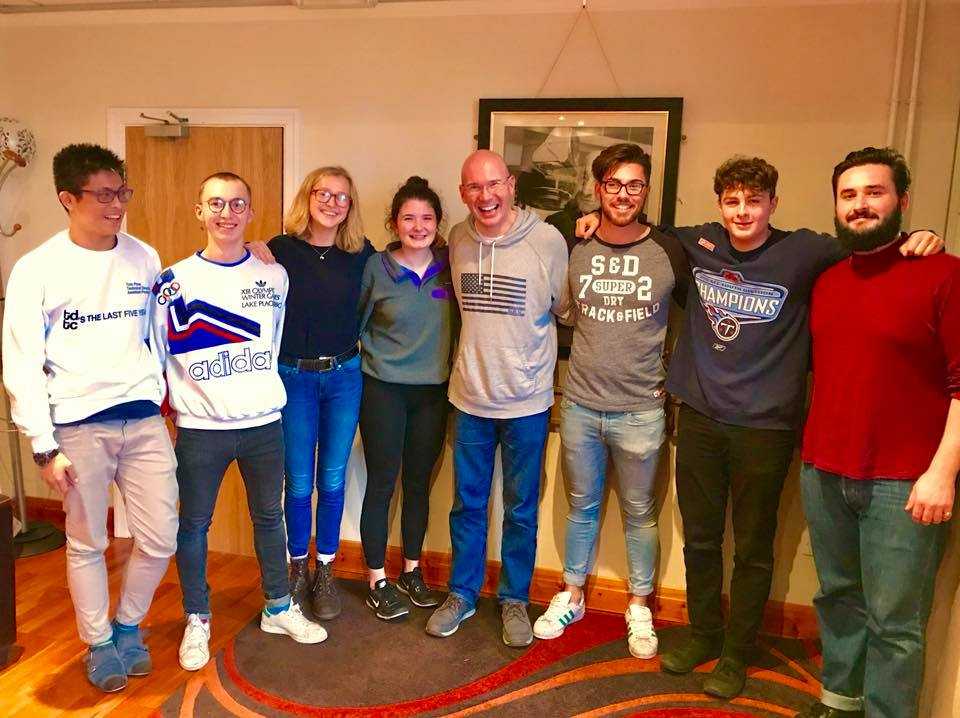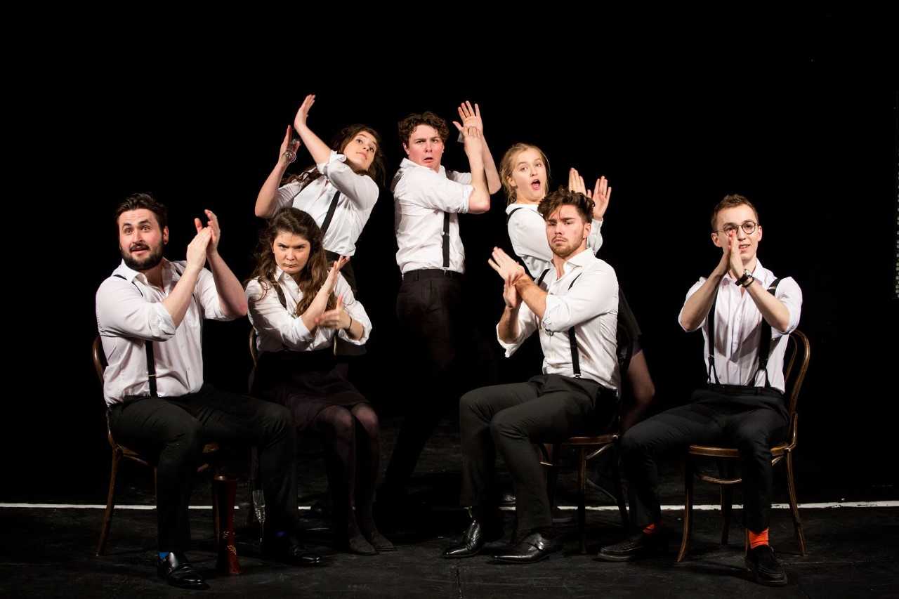 From left to right: Tom Poon (Technical Manager), Charlie Frederick Billingham, Lydia Cook, Lily Edwards, Alex MacQueen (alumni), Luke Maskell (President), Hamish Lloyd-Barnes (President 2018/19).