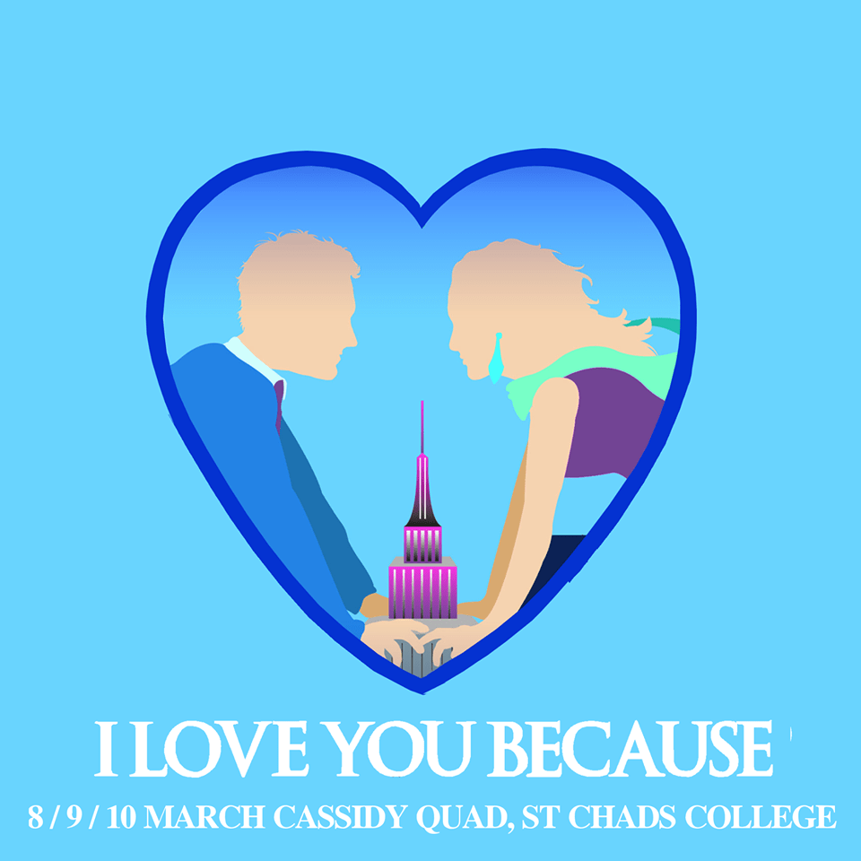 ‘I Love You Because’ is on 7.30pm Friday 9th March- Saturday 10th March, with a 2.30pm matinee performance on Saturday, in the Cassidy Quad at St Chad’s College.