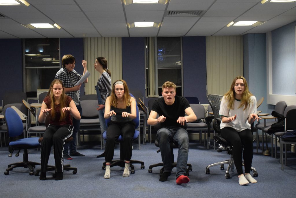 With a devised show, the vast majority of ideas come from the cast and so it was all about letting them throw ideas into the mix, stripping back every layer of Hell to its main themes and building it from the ground up. Starting with simple physical moves we crafted big, complex and intricate sequences, one of my favourites of which is the sequence for fraud. I won’t spoil it too much for you but it involves some beautiful choreography on spinning chairs.