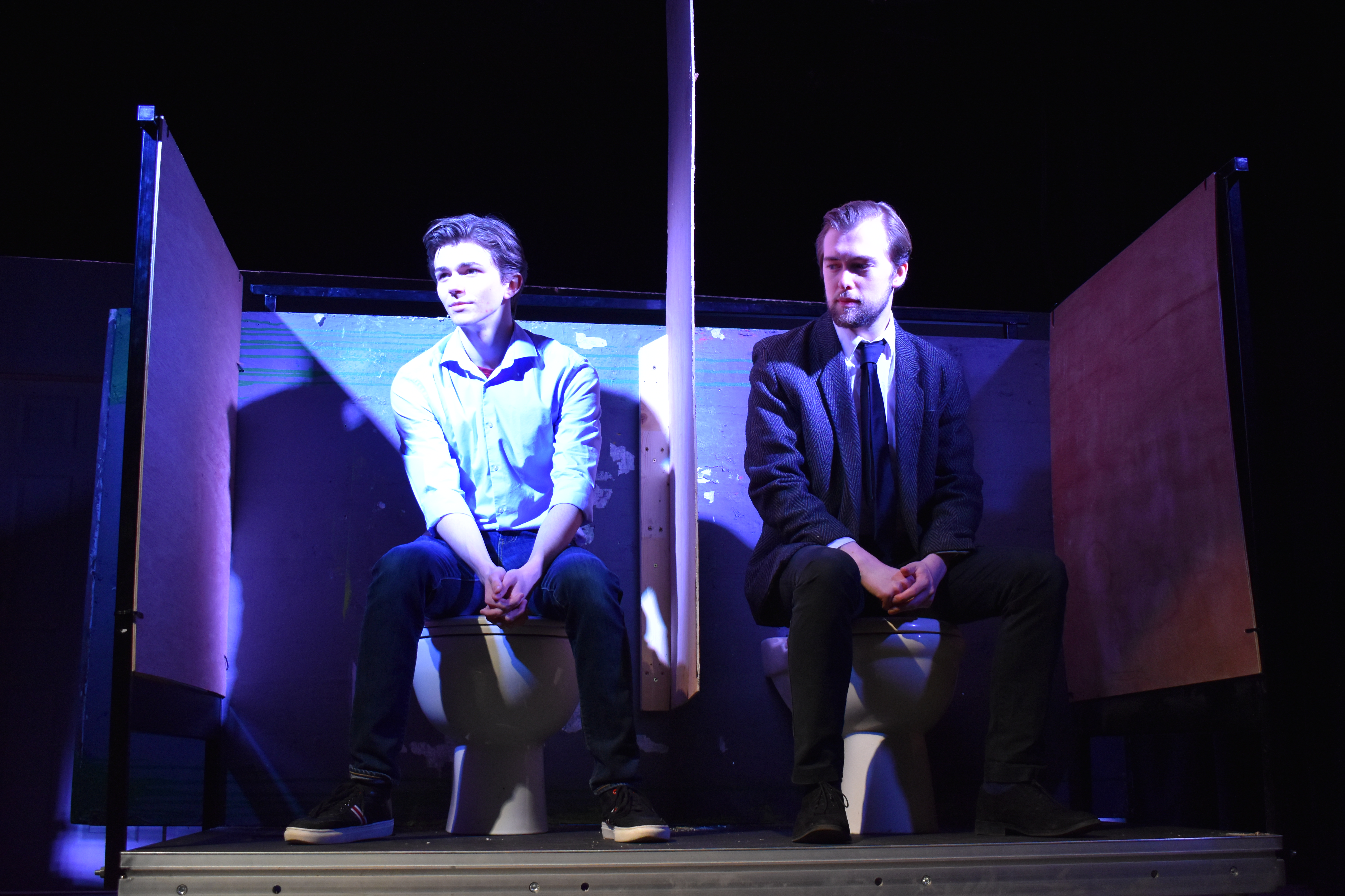 I have to agree with the Director, that ‘the script of Cottage itself is a work of art’. It is expertly crafted to be pacey, hard-hitting and incredibly genuine. Ben Willows displayed extraordinary talent throughout the evening, in his role of Mr Alexander, as well as one of the lead characters in his own self-written play. Willows and Stephen Ledger worked masterfully together to explore the growing connection between strangers both physically and emotionally, as they meet in a grimy public toilet.