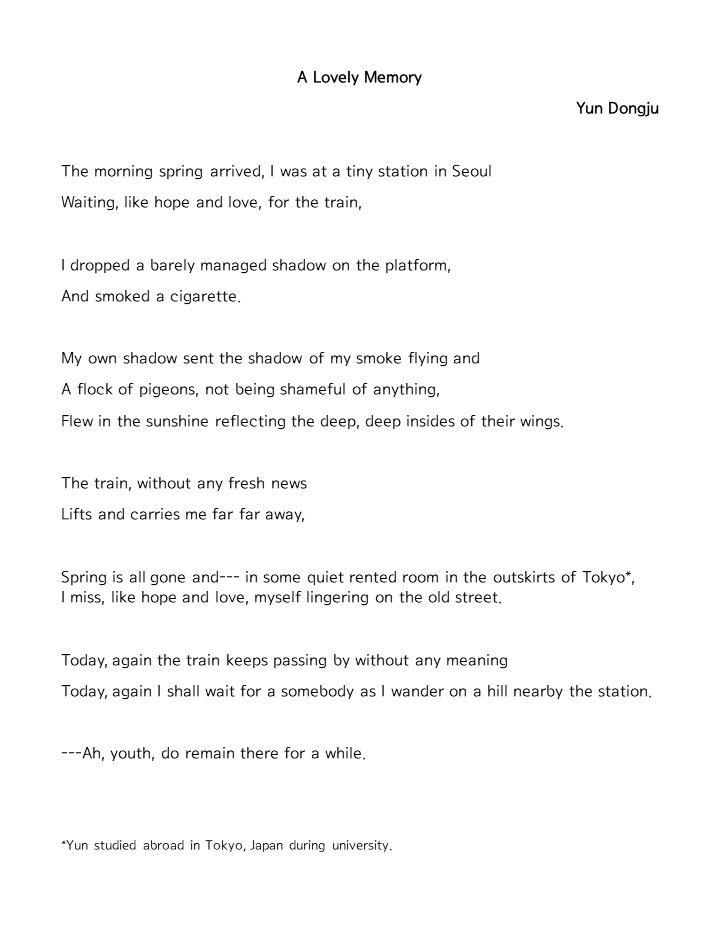 1) ‘A Lovely Memory ( 사랑스런 추억 )’ by Yun Dongju ( 윤동주 )