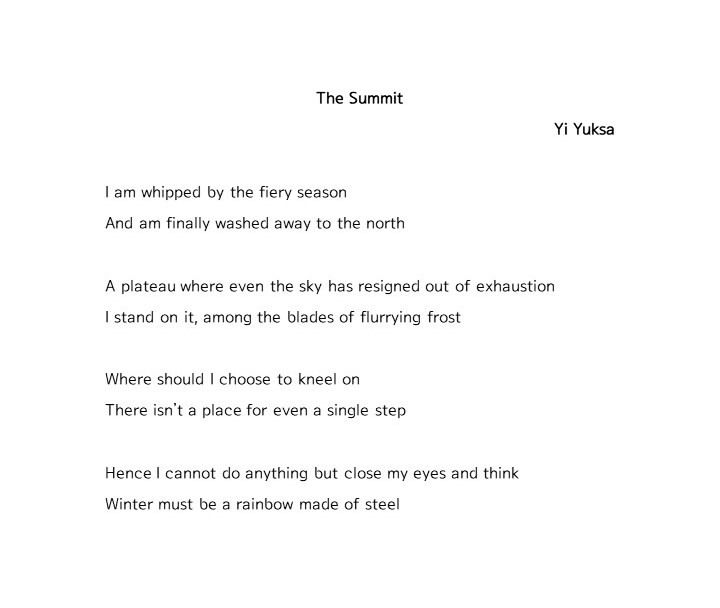 2) ‘The Summit ( 절정 )’ by Yi Yuksa ( 이육사 )