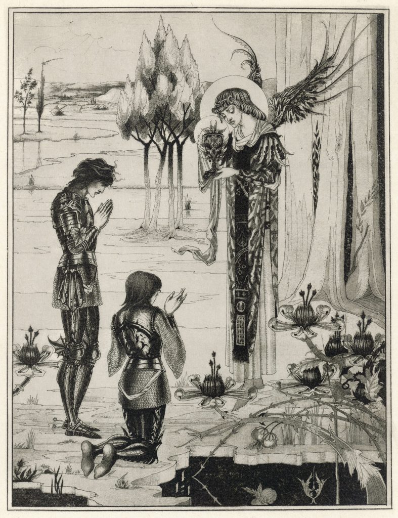 The lore of the Grail is expanded upon further by the fifteenth-century English knight Sir Thomas Malory in his seminal collation of Arthurian works titled Le Morte d’Arthur. In this version, the Holy Grail comes into the presence of the entire Round Table: