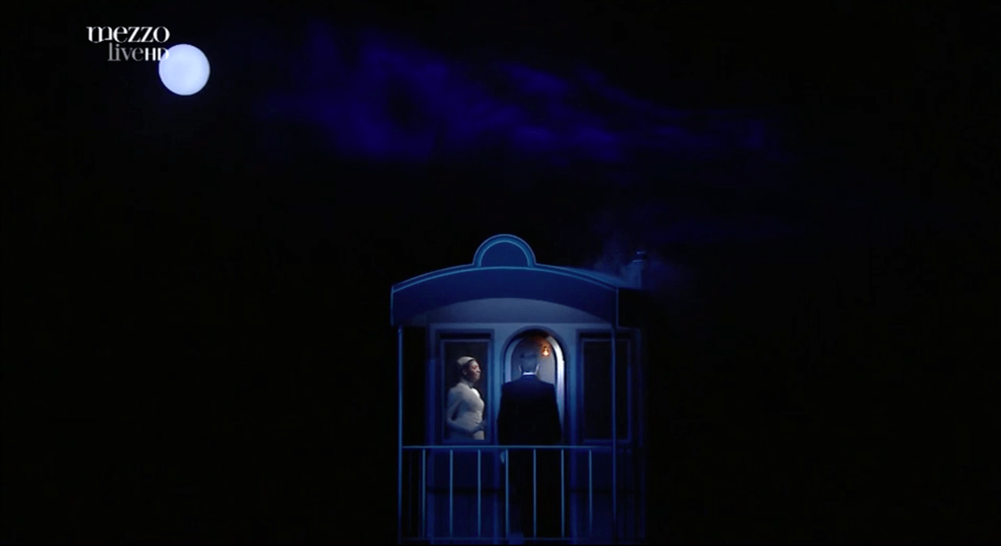 Screenshot of Einstein on the Beach performance “Einstein on the Beach. Эйнштейн на пляже. Роберт Уилсон и Филипп Гласс.” on Vimeo by Форма агентство в : balcony scene