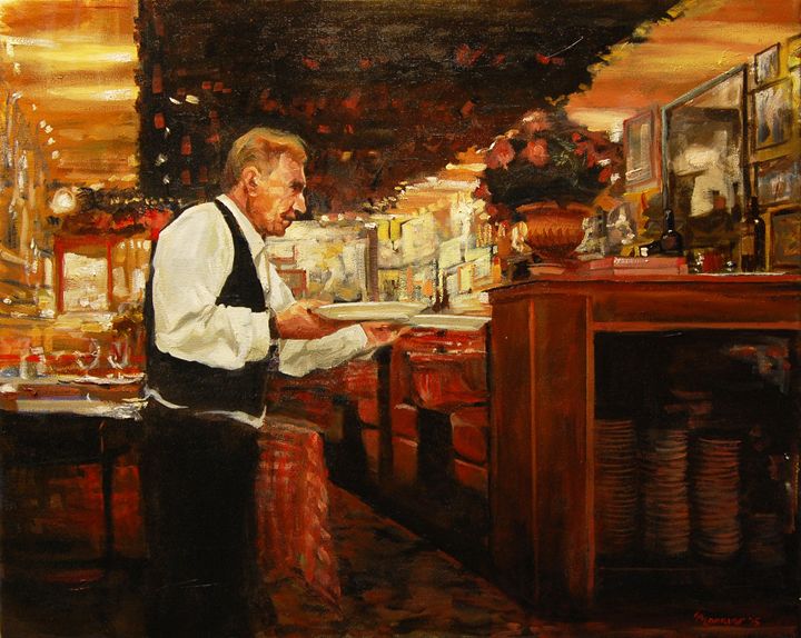 Buca Di Beppo Waiter painted by Onelio Marrero. Taken from: ArtPal