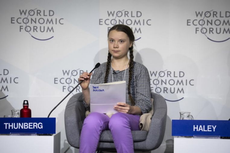 Swedish climate activist Greta Thunberg, 16, at a panel session at the 49th annual meeting of the World Economic Forum in Davos, Switzerland, on Jan 25, 2019. PHOTO: EPA-EFE