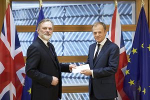 Donald Tusk receiveing the letter from the British government that triggered Article 50. Credit: Flickr