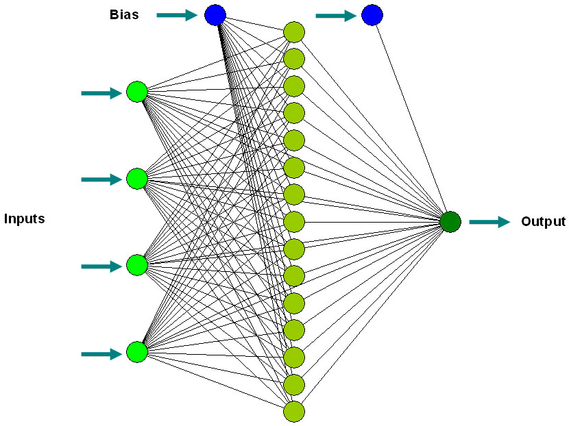Basic neural network showing how nodes are connected to take an input and deliver an output. Image by Cesar Jung-Harada on Flickr.