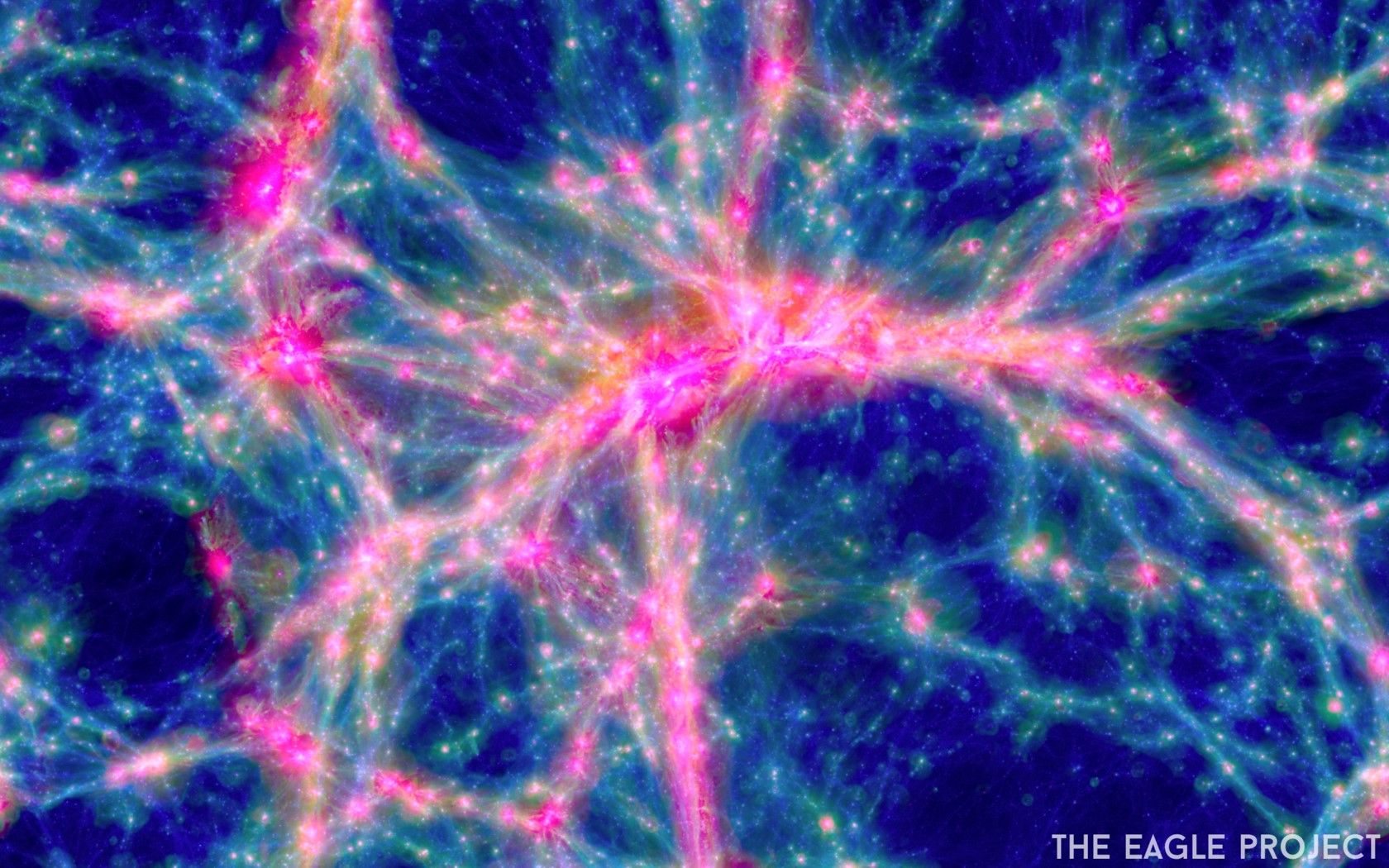Simulations of the evolution of the universe relating to the work of Professors Frenk, Theuns and Jenkins (Credit: The EAGLE Project)