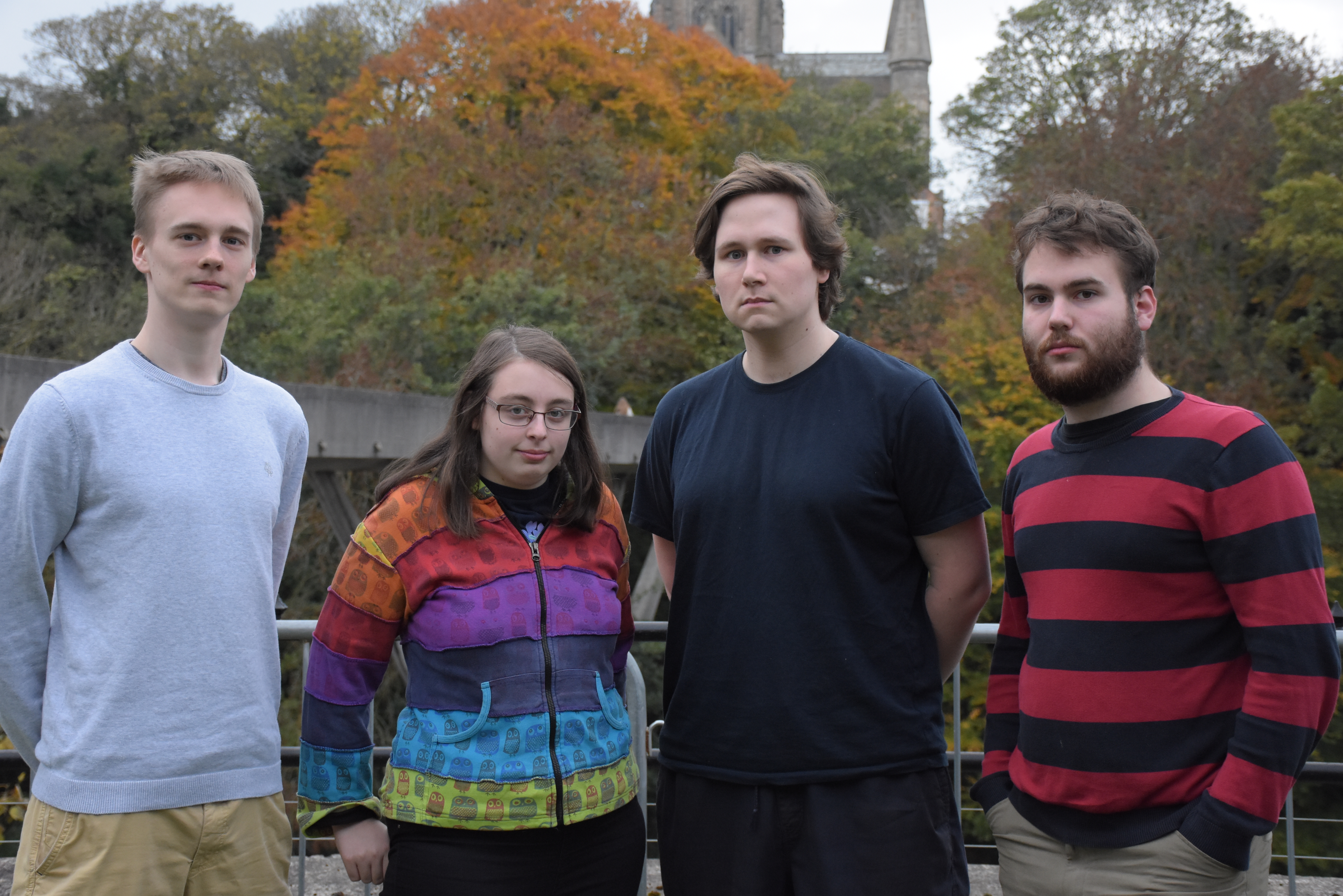 Societies Committee members. Left to right: Arved Kirschbaum (Academic Rep), Amie Key (Hobbies & Games Rep), Steven Lowes (Societies Committee Chair), David Theisler (Arts & Music Rep). Photo credit: Nick Boreham