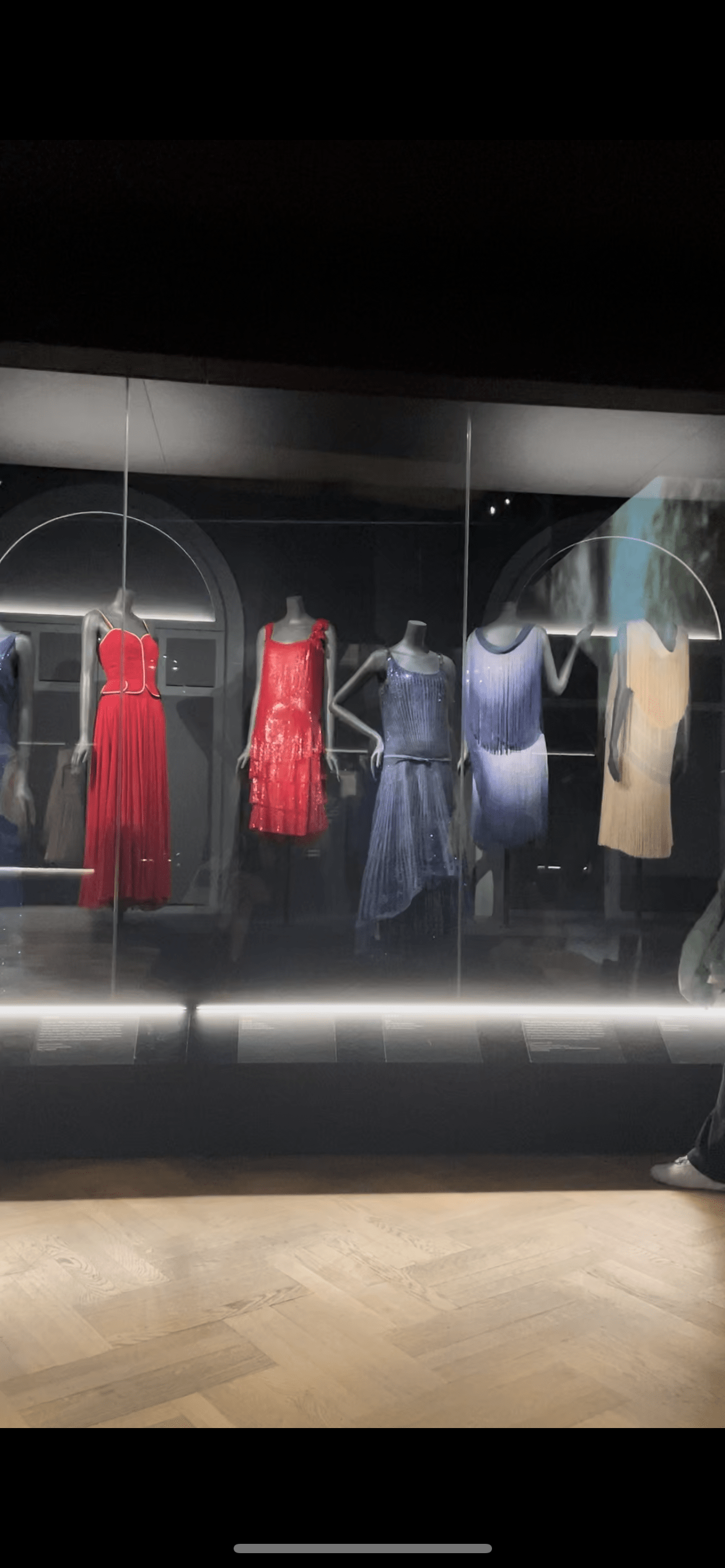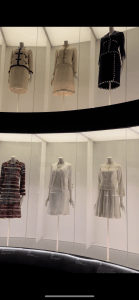 Once my group had gained access to the exhibition, there was immediately a timeline to present the evolution of the Chanel legacy, and this evolution was then demonstrated through her fashion pieces as you progressed throughout the museum. Importantly, the timeline did not stray from discussing the fact that Gabrielle Chanel dated the Nazi officer Barons Hans Gϋnther von Dincklage in order to get her nephew, André Palasse, out of prison. It crucially mentioned that in 1941, Chanel was appointed as a German spy under the code-name Agent F-7124, and her nephew was released from German imprisonment. This complicated history continues to divide people as to whether they can support the Chanel brand today, on this matter I will say that currently Chanel is owned by Alain and Gerard Wertheime – a Jewish family, so any current support does not benefit anyone affiliated to Nazis in the past.