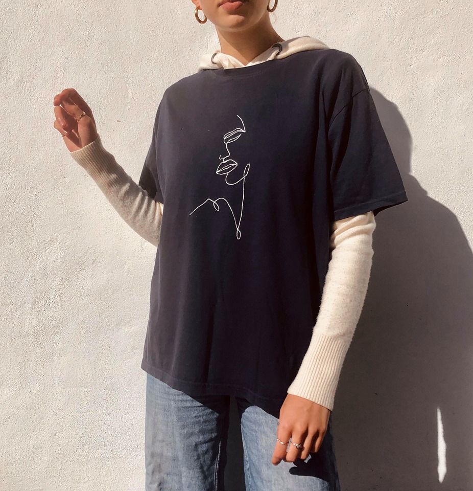 As someone whose second home is a charity shop, who loves rooting through vintage sales and warmly welcomes hand-me-downs, I try as much as possible to follow a reduce, reuse, recycle mantra when it comes to fashion. Sustainability is was what I had in mind when starting my little clothing business – cydsline designs– during lockdown. I use 100% organic cotton black and white t-shirts, and source from charity shops and other second-hand stores when I can, upcycling them with hand-painted line-drawings to create a contrast print. I want the clothing I make to be indicative of people’s style; personal and unique, so all items are custom-made and can be personalised by sending in an image from which I can make the design from!