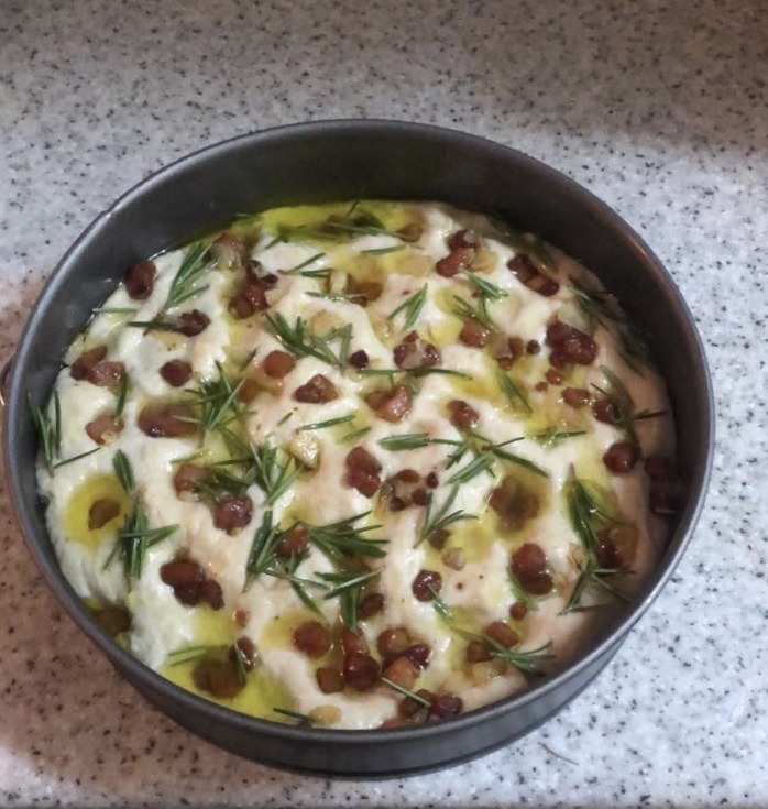 Finally, the moment has come where you may pop that bad boy in the oven- leave it for twenty minutes, enjoying the wonderful smell of pancetta, and rosemary. Once the focaccia is out of the oven, you may enjoy it immediately. I was very pleased with this recipe and found it to be very user-friendly, and am glad that I was able to feed my craving I had been having since watching The Great British Bake Off’s ‘Bread Week.’