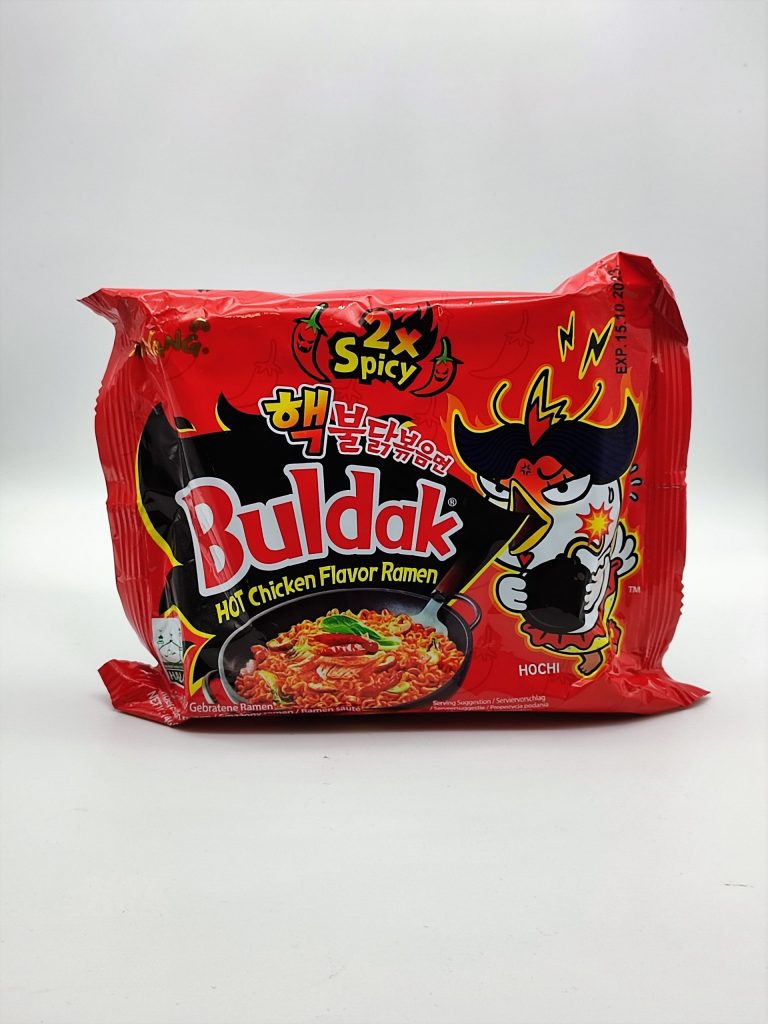 Eating 2x Spicy Buldak is like stepping barefoot on a lefo – for 15 straight minutes (if you’re lucky) – while someone calmly tells you, “It builds character.” It’s aggressive, unnecessary, and deeply memorable.