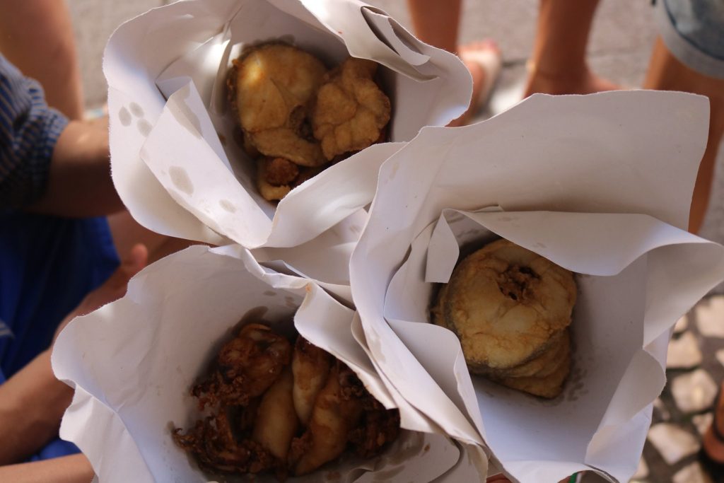 I started off with tortillitas de camarones or shrimp fritters which is a classic staple in Cádiz. This was followed by some fried calamari. I remember eating outside under the shade; the buildings were so close to each other that they afforded good cover from the sweltering sun. The restaurant was absolutely packed and hearing the hustle and bustle from waiters serving food and the lively chit-chat from the other customers made me feel reassured in a weird way. I love these kinds of settings. For my main, I had a grilled whole mackerel (head, bones, and all) accompanied by some onion, red and green bell peppers, and sweet ripe tomatoes. And that’s all you need really. For such a simple dish, it just tasted so good! My parents had swordfish and tuna steaks, and we shared a hearty bowl of steamed clams and prawns. What I loved most about the clams and prawns was the fact that the chefs used water from the sea in order to steam the shellfish. By the end of the meal we were completely stuffed and we washed down all that wondrousness with refreshing manzanilla. All this for well under €30 for mountains of food, whereas other restaurants will perhaps charge in excess of up to €60 for a small main between two.