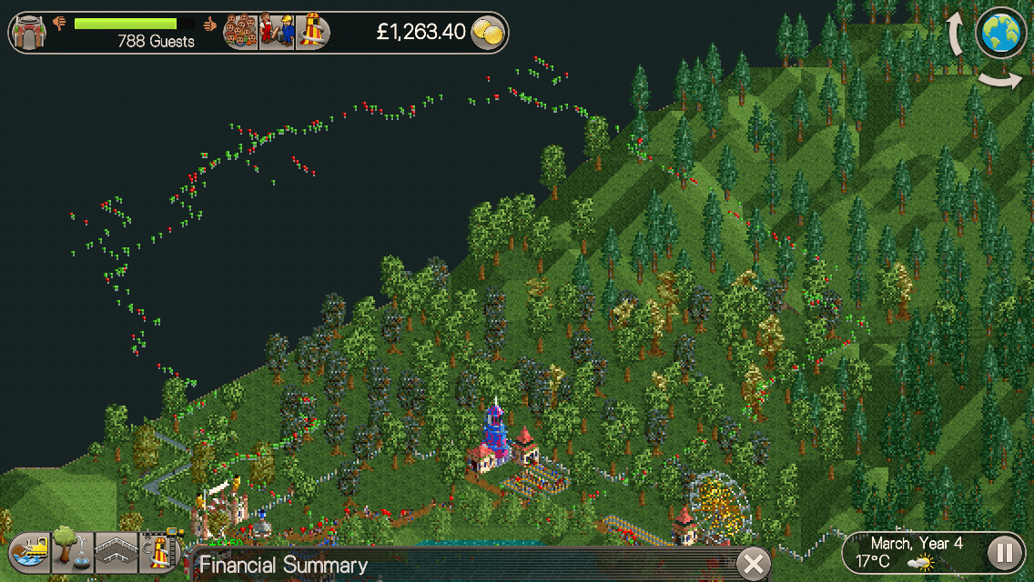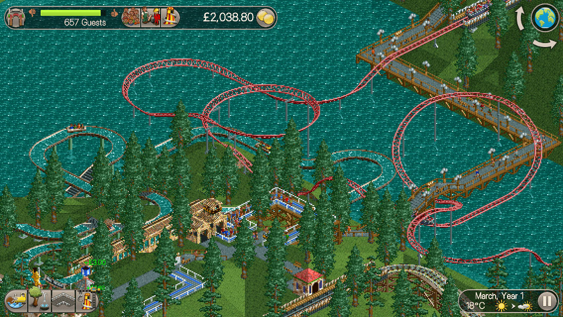 So here I am, wrapped up in bed, tapping away at my iPhone screen, building a looping roller coaster on my lakeside theme-park.