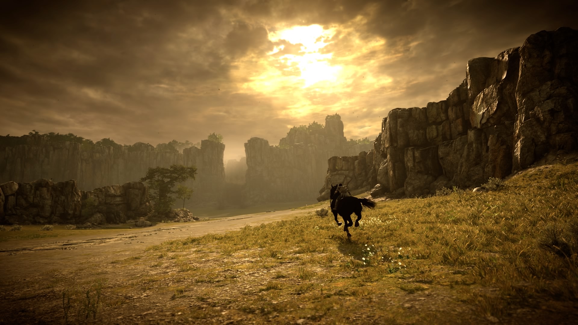 The remake presents a substantially enhanced graphics design where the intricate details set the trend of extremely reaslitically immersive environment: shades of sunlight through clouds, lush branches or dead silent valleys creates the desired effect of the epic fairytale. The story is the same where a character the Wanderer needs to resurrect a maiden girl Mono and he goes through great lengths to attain his goal like destroying colossi in a forbidden land to give power to a shaman to execute a ritual. Every colossus has a weakness and the player should solve it like a puzzle in order to slay it successfully. The epic tale is reminiscent of myths and legends about heroes where nothing specific is known about the protagonist and the hero has to complete set of tasks to complete his quest or go through some kind of personal challenges as described by Joseph Campbell’s “The hero with a thousand faces“. The emptiness in the world gives the chills of the importance of the quest and the possible grim emotions of the character that drive him to do what is necessary to accompish it, how he loses part of himslef after killing beast after beast by giving a gripping brutal story. It is the total opposite of conventional exploration games where the worlds are colourful and exciting, that feel alive with the tons of living creatures and where the joy of hunting and slaying has been dimmed down a little just by the overwhelming quantity rather than quality. The Shadow of the Colossus effectively makes the player care about the journey of the character and the nature of the beasts because of their own special traits and behaviour. Even your horse Argo still has its tricky navigation as during high-speed ride taking turns is somewhat frustrating but its horse temper is still quite as entertaining.