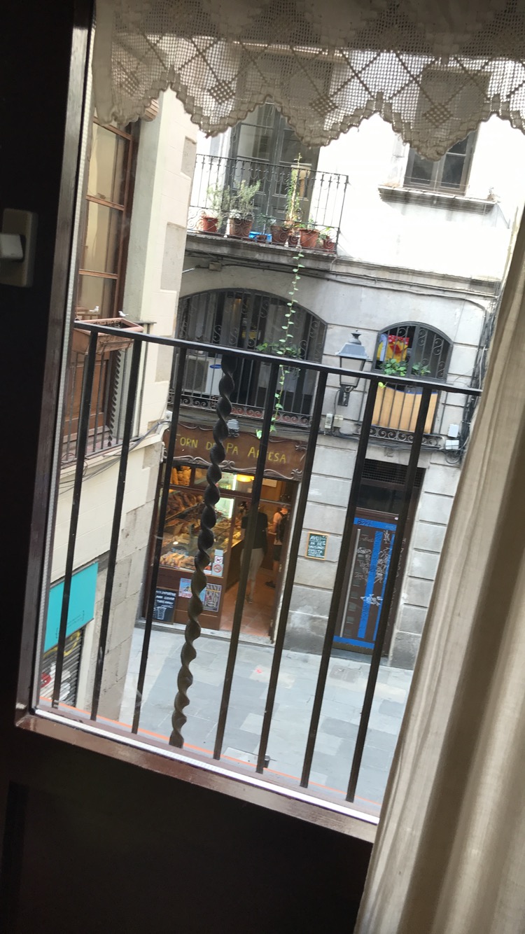 of luggage-finding, taxi-riding and language barriers, and we ascended the steep flight of stairs towards our tiny apartment with some trepidation. Everything felt so compressed, the buildings were narrow, tightly-packed, and so seemingly tall that you felt a sense of claustrophobia when looking skywards. Ours was no exception. We were, however, pleasantly surprised. We had a tiny little balcony – there was barely room for one – on which we could see (and smell) the tantalising bakery opposite. It attracted all manner of people: local residents, police officers, not to mention us. Somewhere above, a television was blaring, down below dogs were howling, and the people were too – with laughter. We found ourselves in the centre of everything.