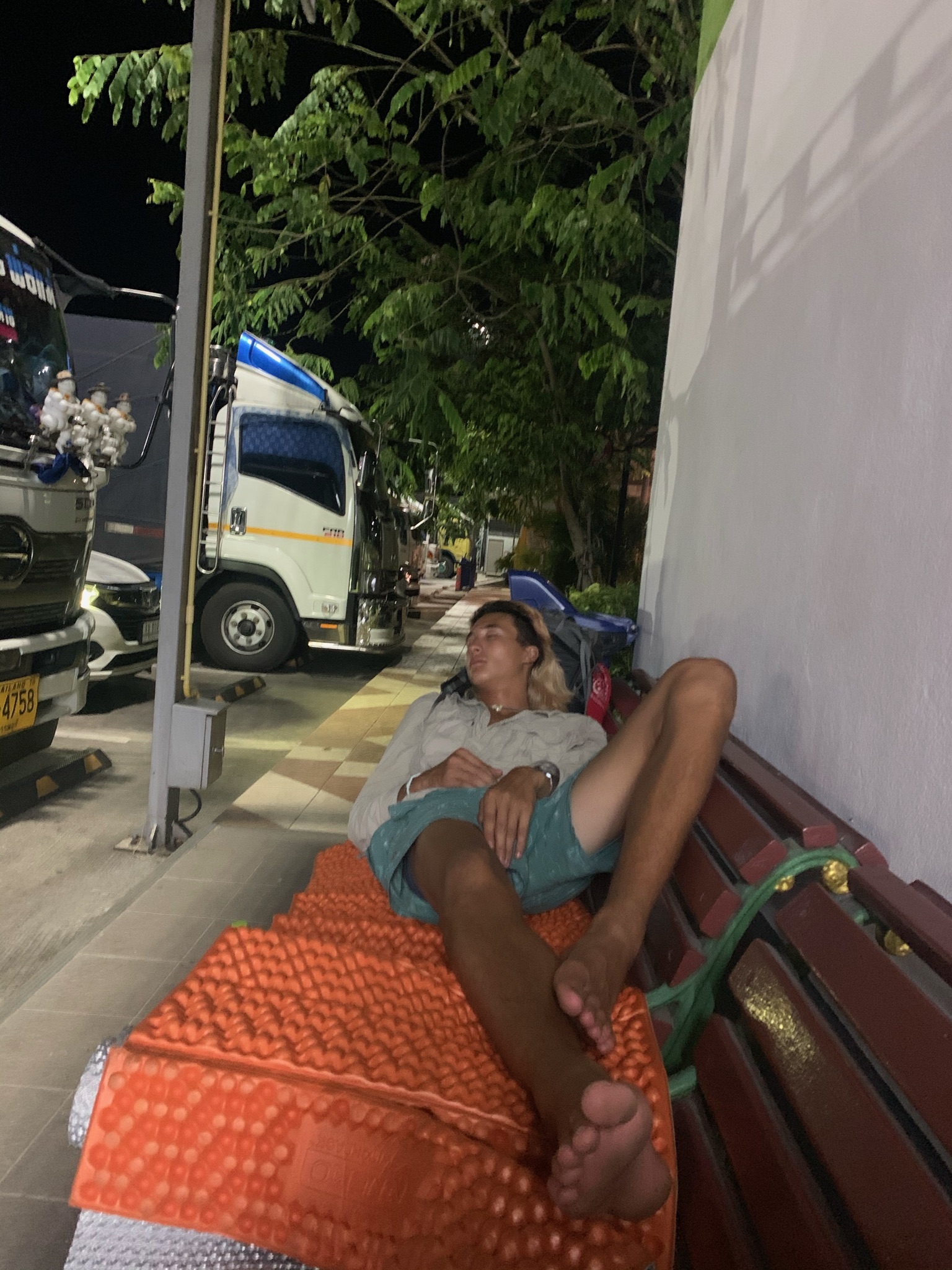He dropped us off on the side of the motorway where we were parting ways. Within 5 minutes of being dropped off, this taxi pulled over to the side. When he turned up, I spoke to him saying sorry, but we weren’t looking for a taxi. Nodding his head, he said that he knows and that this taxi isn’t his. He offered to drive us all to way to Bangkok – around an 11-hour drive. It was basically a miracle, getting a hitch all the way. We ignored the question of whose car it actually was. A few hours in we realised that he was barely conscious most of the time. We would be coasting along and then he would jolt awake and swerve the car narrowly missing some barricade or other. He set some alarm clocks to beep every minute. Because he was taking us the distance, we were reluctant to hop out. Dying in this taxi wasn’t a great prospect so at the next gas station, we did bail.One too many swerves. We thanked him, and then explained we were staying the night here. I hope he made the drive in one piece.