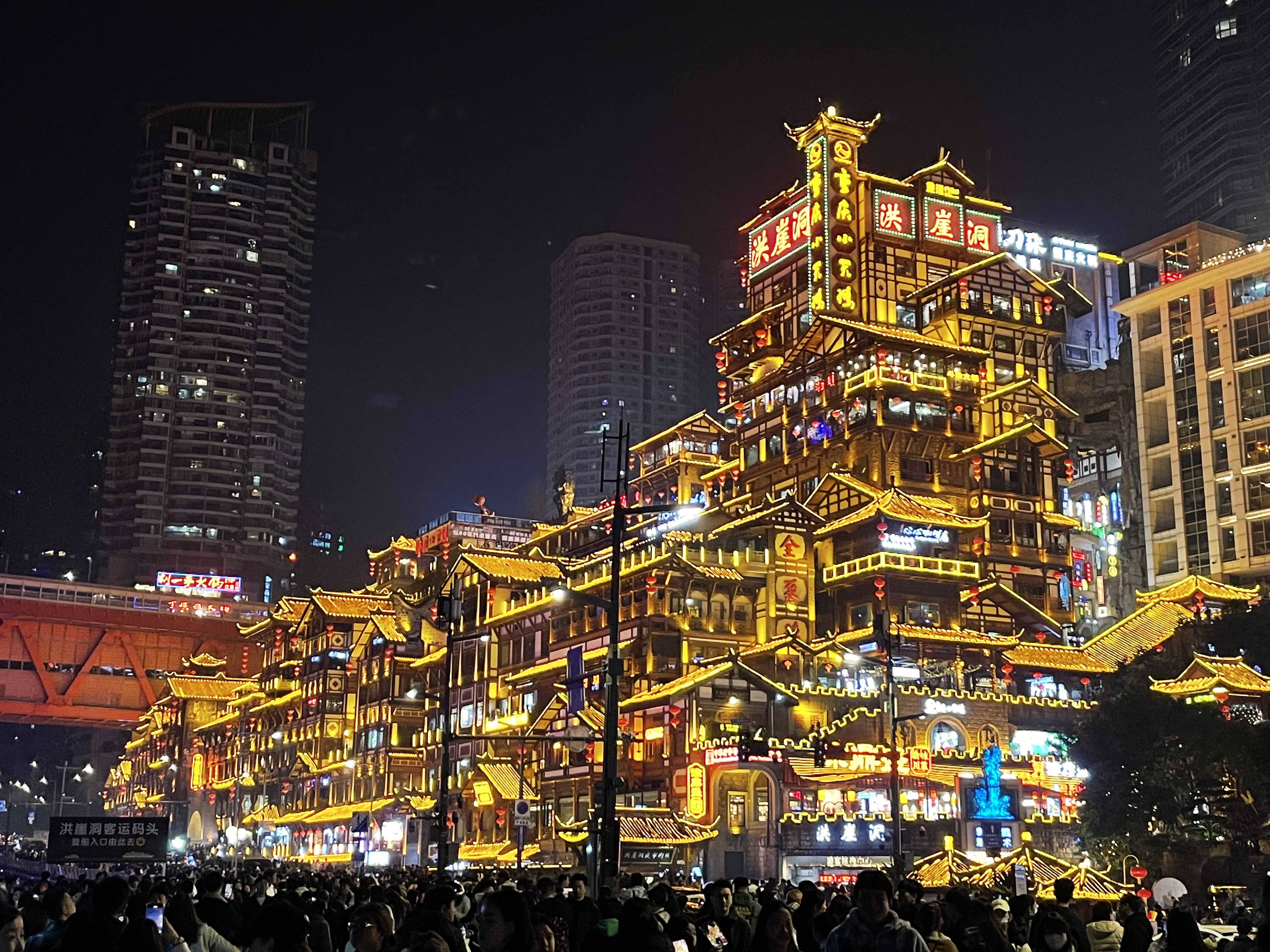 With no fellow hostel-goers to worry about, my alarm went off bright and early the next day. As if in a trance, I made my way through a list of key attractions, from the Kuixing Building (a centuries-old plaza which is also, somehow, a rooftop) to Liziba Station (a train stop that runs through a 19-story block of flats). I began to understand why Chongqing is also known as ‘The 8D City’; what looked like a small distance on Apple Maps was actually an hour-long detour involving multi-level navigation. Though I got lost about 17 times trying to find it, I did quite enjoy watching the train carriage effortlessly glide through the building in front of me. As did the hundreds of Chinese tourists standing next to me, phones-in-hand and ready to capture it on video. Just a bunch of people living in the moment, really.
